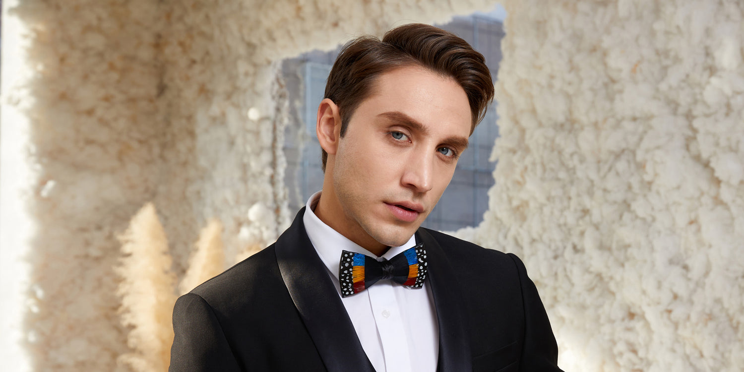 Lanzonia Feather Bowtie Handmade Mens Wedding Bow Tie
