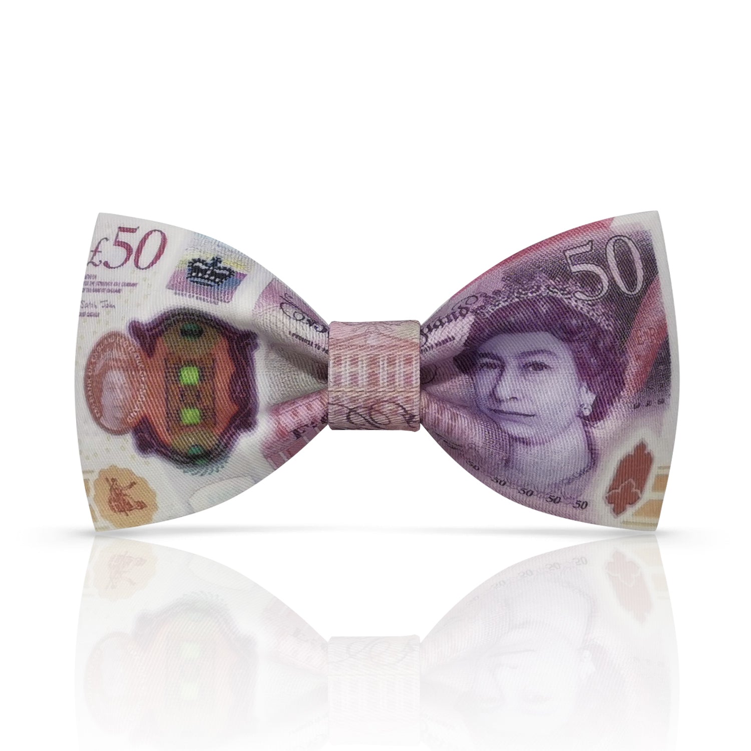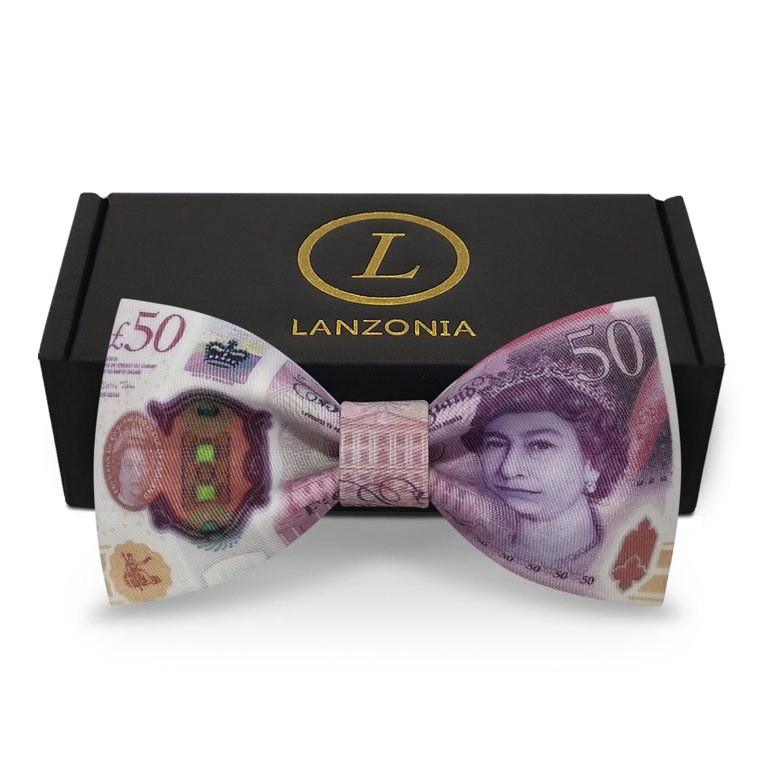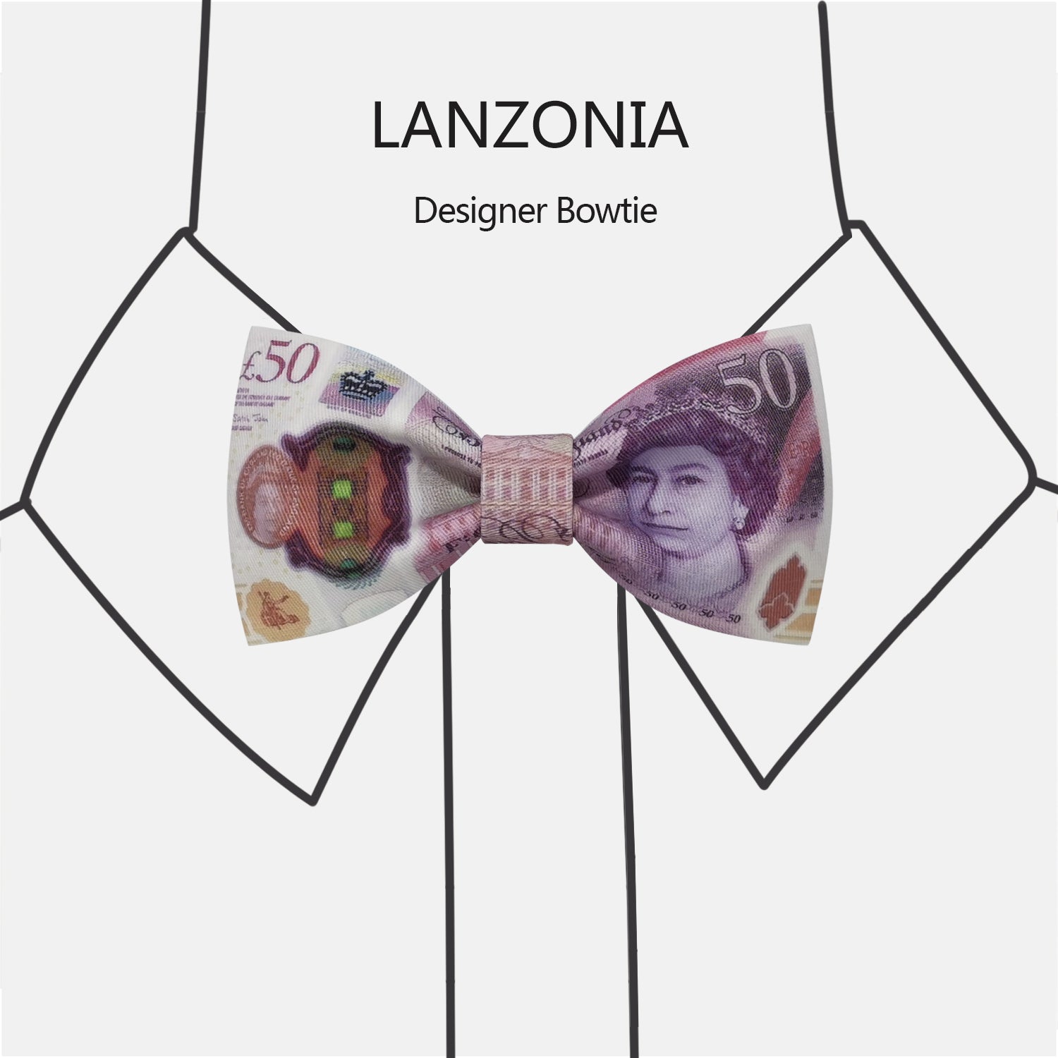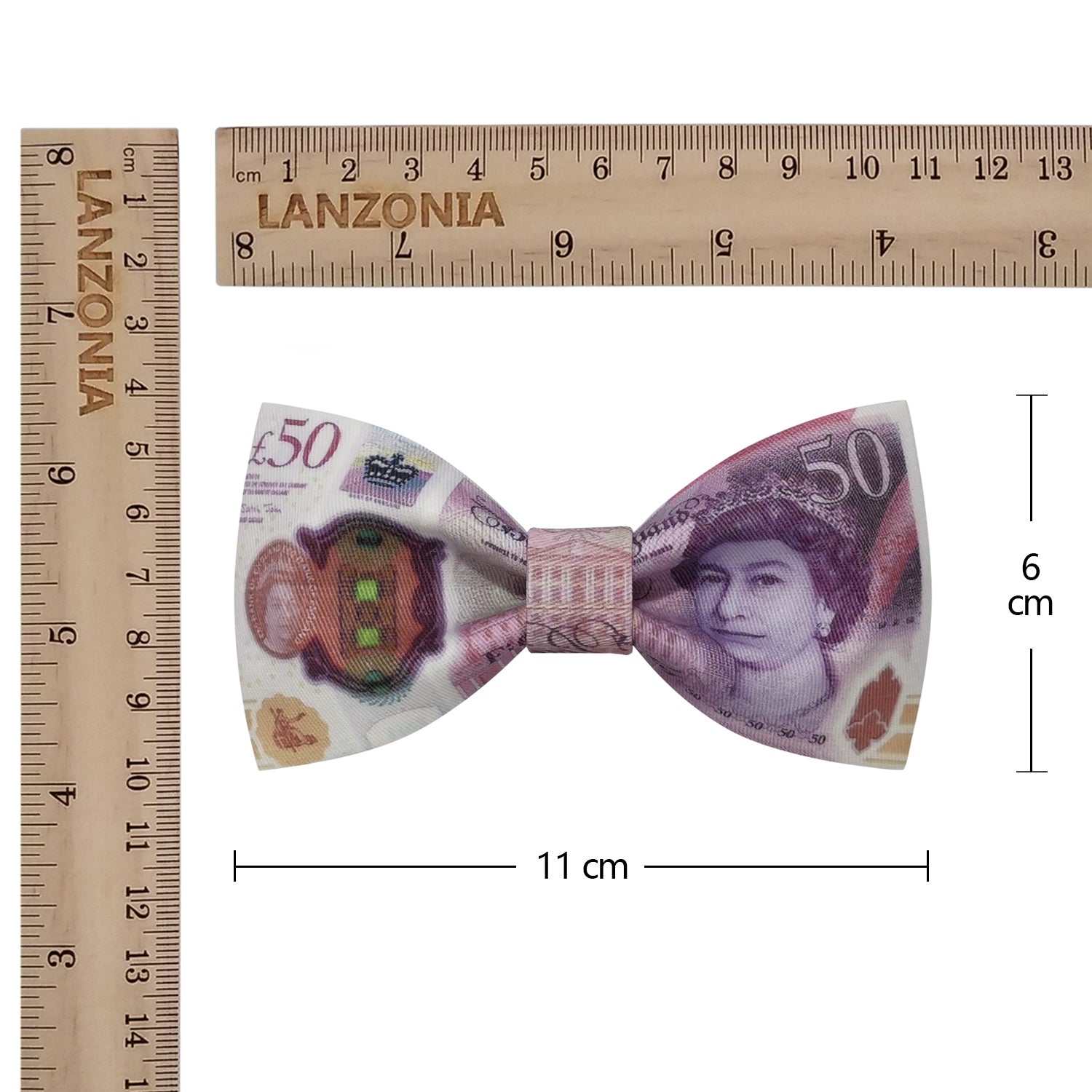 Lanzonia Men's Novelty Bow Tie Funny 50 GBP Money Pattern Designer Bowtie for Holiday New Years Eve Party