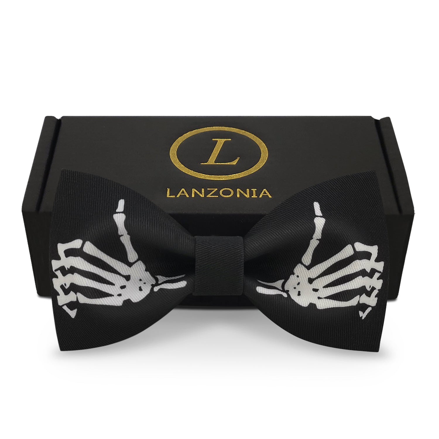 Lanzonia Mens Novelty Skeleton Bow Tie Funny Skull Designer Bowtie for Holiday Halloween