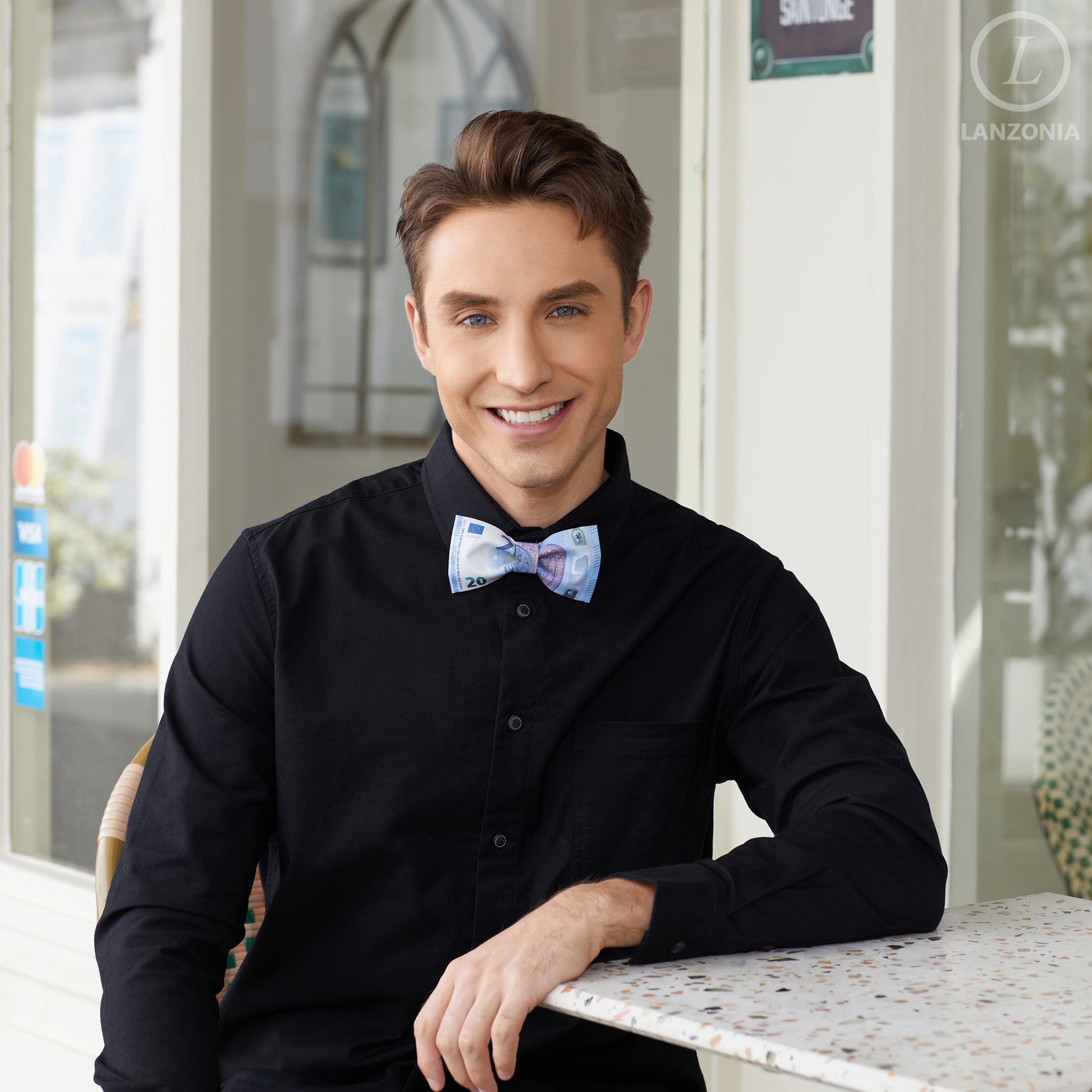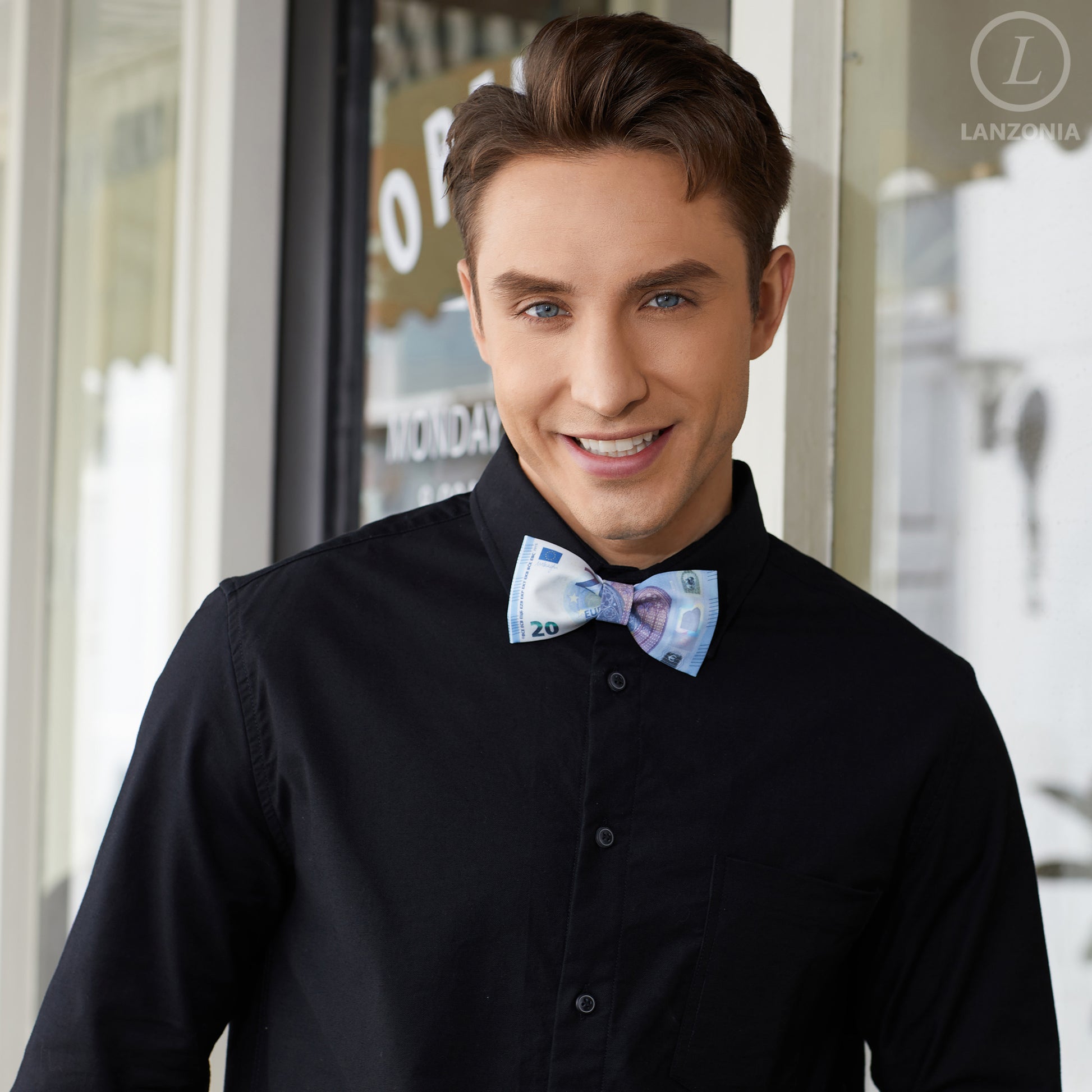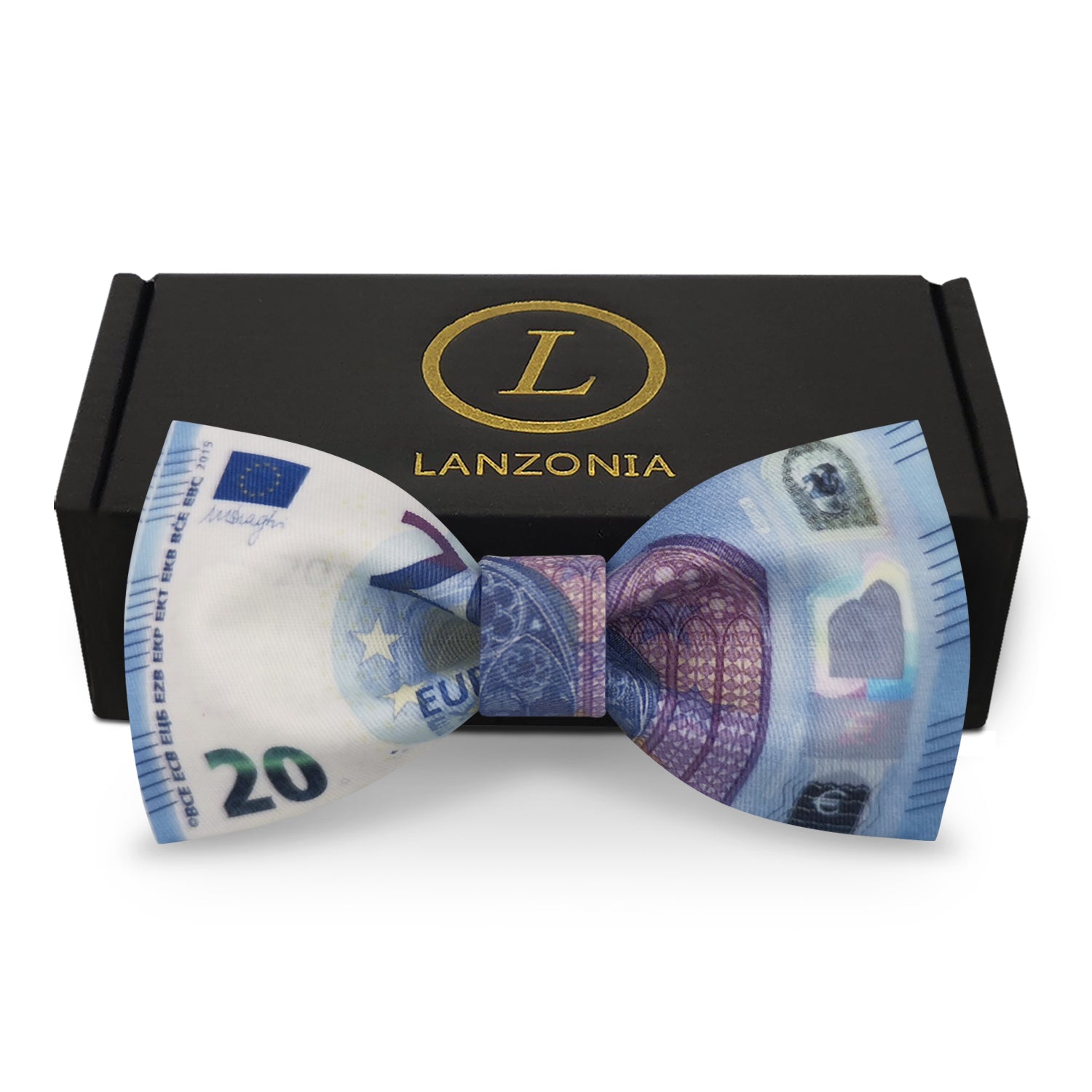 Lanzonia Men's Novelty Money Bow Tie Funny 20 EUR Pattern Designer Bowtie for Holiday Party